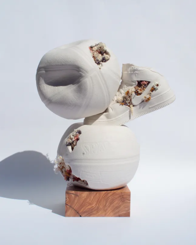 Avant de se consacrer à l’art, il a mené plusieurs vies : consultant R&D à Paris pour de grandes marques, puis directeur de restaurant à Los Angeles. De ces expériences, il garde une lucidité sur la société de consommation et une conscience écologique qui irriguent aujourd’hui son œuvre. Diplômé et major de promotion en art et design produit à Nice, il s’est formé à la sculpture et au moulage auprès de l’artiste-fondeur Stéphane Cipre, avant d’effectuer une résidence à Monaco en 2021.